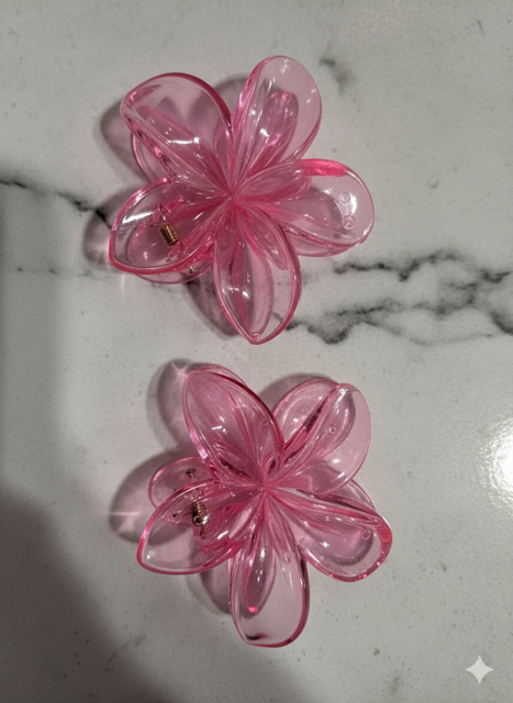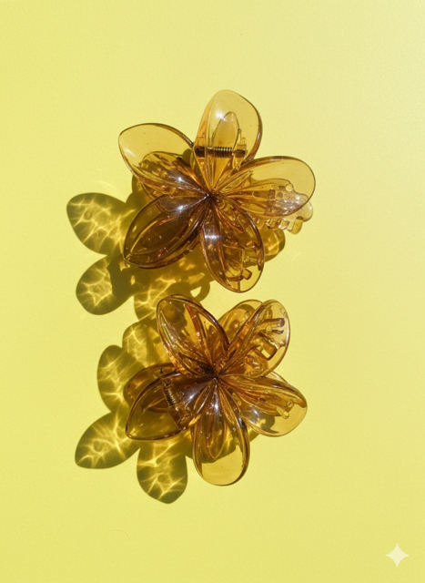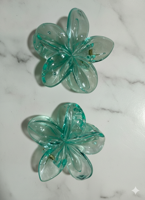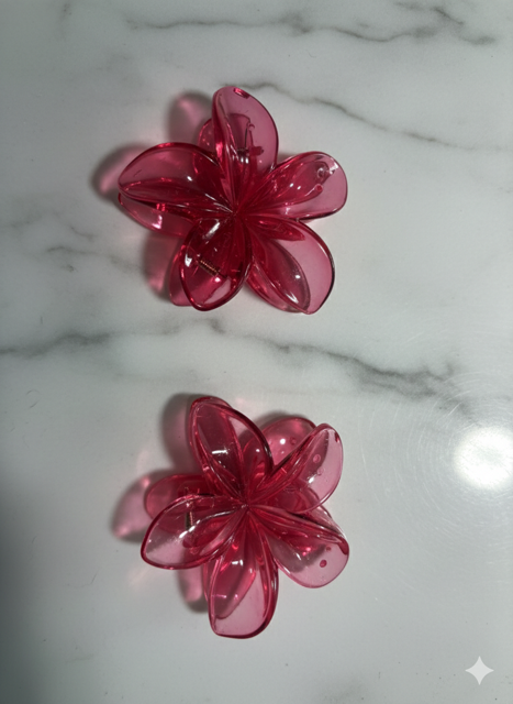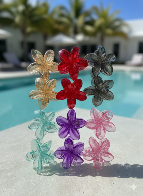 Glitter Plumeria Flower Hair Claw Clip – Set of 2 Double the tropical charm with our shimmering Plumeria Flower Claw Clip set! These translucent, glitter-infused clips feature a strong-hold design perfect for beach days or a Y2K-inspired look. Lightweight, water-friendly, and sold as a pair—it’s the ultimate accessory for your next getaway.