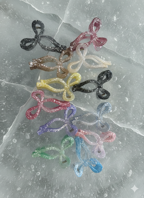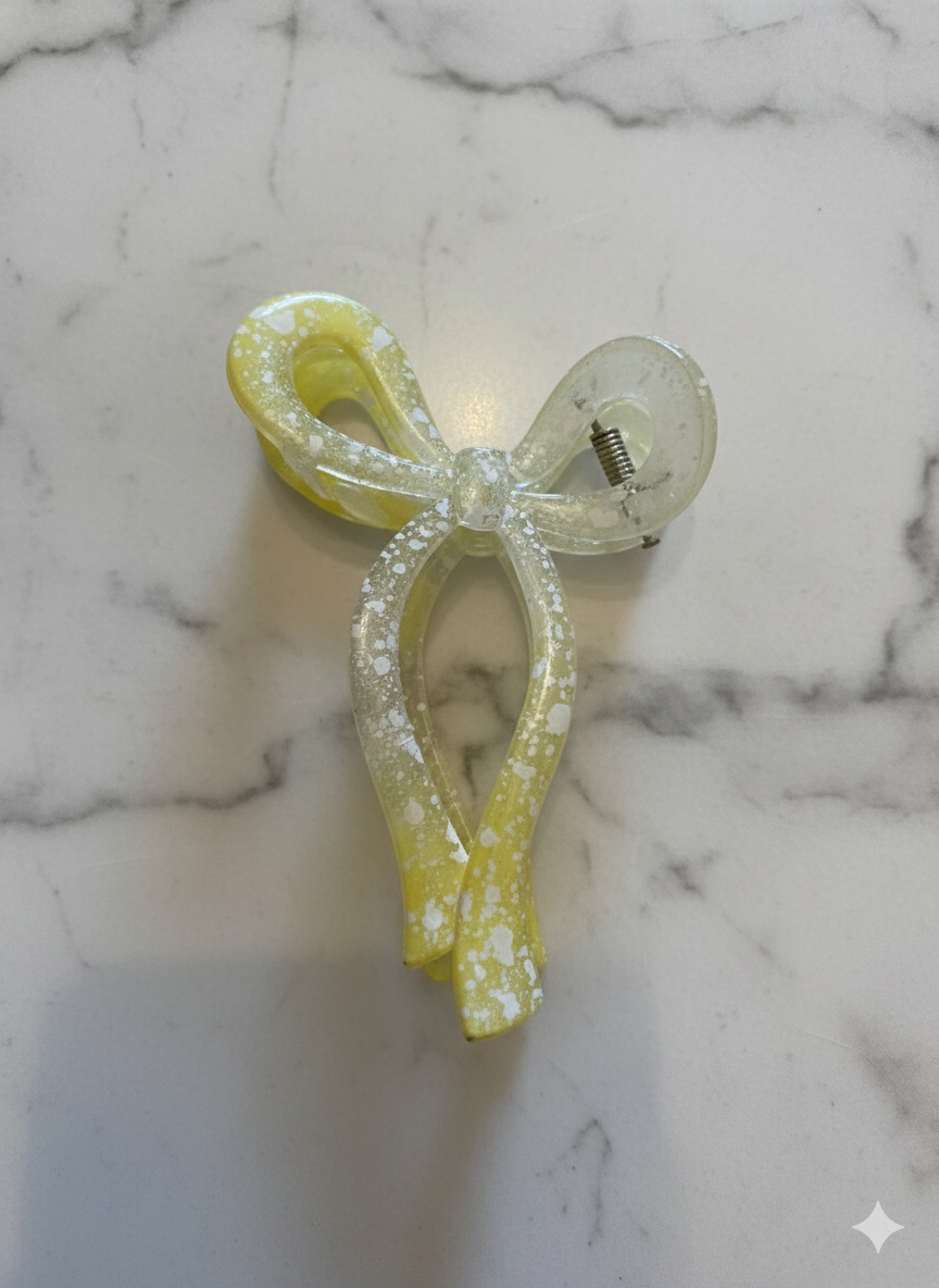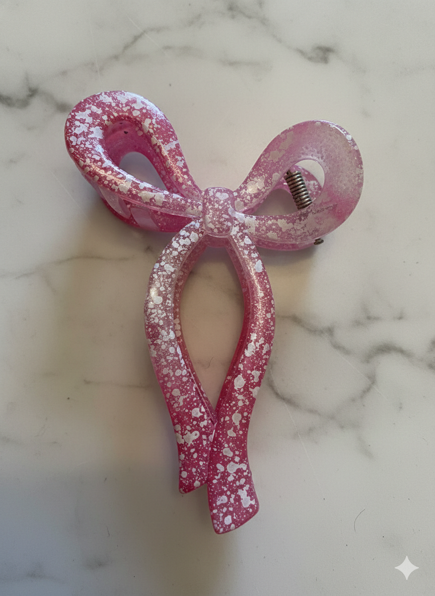Best 2026 Speckled Ribbon Bow Claw Clips. These chic, bow-shaped claws feature a unique splattered paint effect on a semi-translucent base